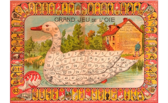 En aquest àmbit es mostra una selecció dels jocs de l’oca del Museu, entre els quals destaca el «Grand Jeu de l’Oie», editat a França l’any 1890, que conté un doble joc de l’oca.