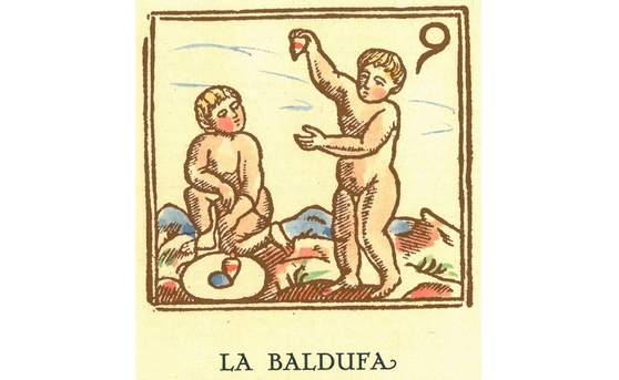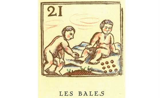 Muchos de los juegos con los que se distraían los niños y las niñas del siglo XIX— y a los que todavía se juega hoy en día— se han heredado de la antigüedad. Algunos, como el tres en raya, fueron especialmente populares durante la Edad Media. En estas aleluyas destacan juegos como la peonza (números 6 y 9), las canicas (número 21) y los soldados (número 29).